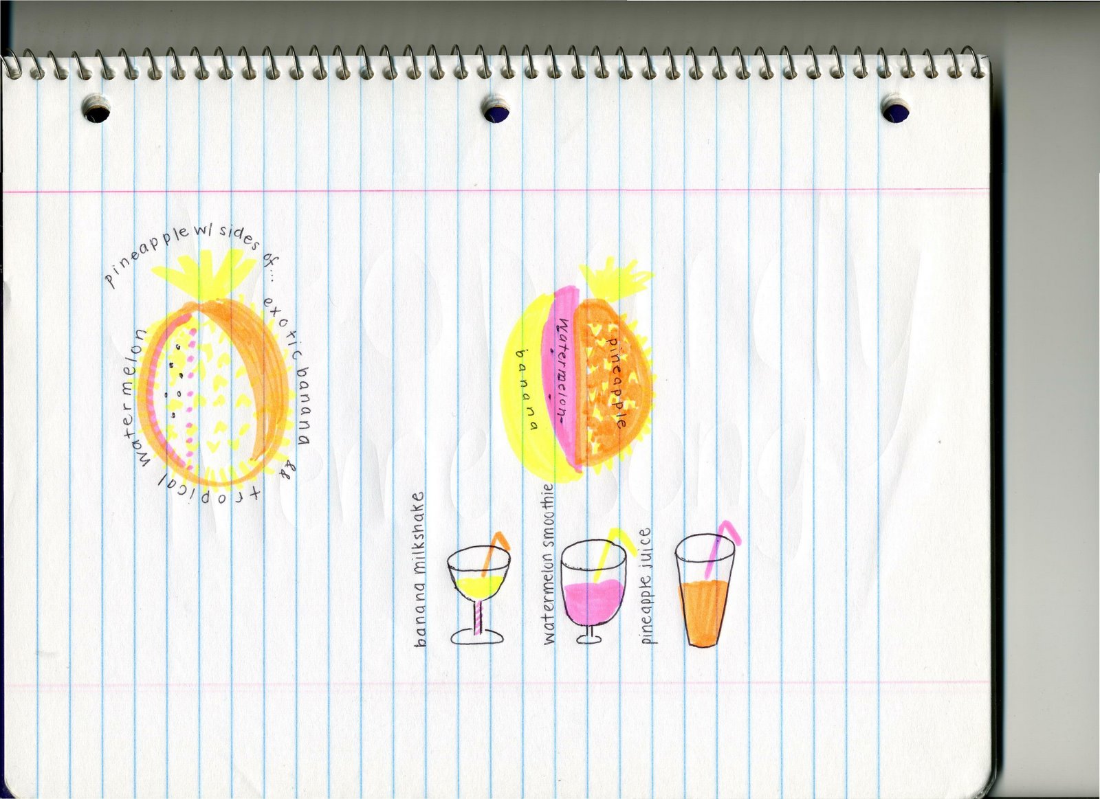 It’s probably a little difficult to read, but in case you can’t tell from the bright colors (highlighters!), it’s a “fruit business” thing. Which reminds me, I haven’t even attempted or thought about the Fruit series for a week or two… But if…I mean, when, I do come up with more, I will most definitely post them. And one day, hopefully soon, I will make a compilation of all my Fruit stuff and use the now above illustration as my “cover” image. Hmm, that’d be cool. I’d call it…Fruit Business. Or something along that line. Wow, just thinking this has made me a bit excited.